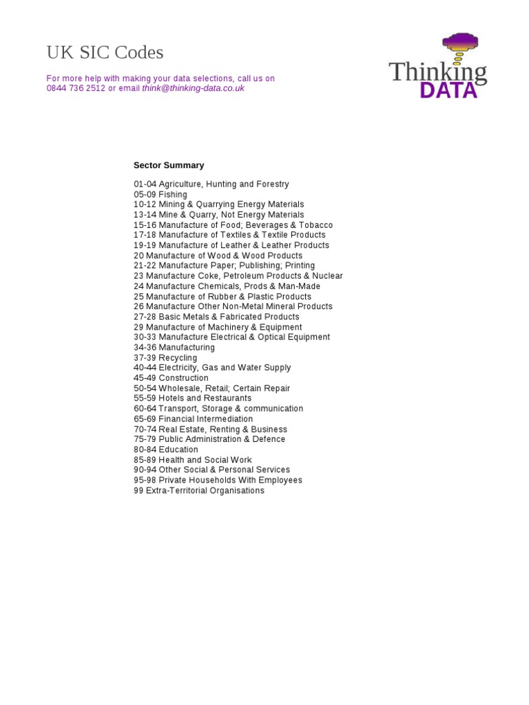 Uk Sic Code List Textiles Drink